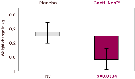 One study on the effectiveness of Cacti-Nea™ enrolled 49 women with a normal body mass index. The women were divided into two groups. The women in group one were given 2 grams of Cacti-Nea™ per day, while women in the second group received a placebo. After 28 days, it was proven that Cacti-Nea™ - unlike the placebo - significantly reduces water weight and contributes to weight loss.